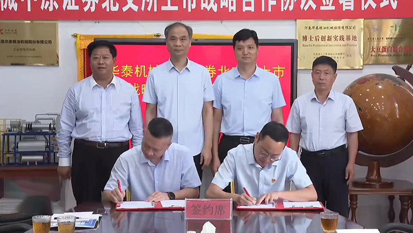 7月24日上午,河南華泰糧油機(jī)械股份有限公司(以下簡(jiǎn)稱華泰機(jī)械)與中原證券正式簽署北交所上市戰(zhàn)略合作協(xié)議。中原證券總裁李昭欣,滑縣縣委副書記、縣長(zhǎng)王軍華,安陽市人民政府辦公室副主任榮文希,華泰機(jī)械董事長(zhǎng)閆子鵬鑒簽,中原證券鄭州投行總部總經(jīng)理陳軍勇、華泰機(jī)械黨委書記兼總經(jīng)理閆博作為雙方代表簽約。滑縣副縣長(zhǎng)顧建宇主持簽署儀式。